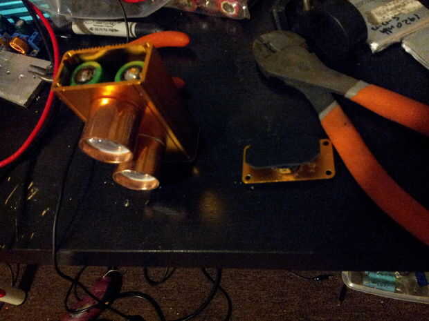 Ahora sólo empujar todo (asegurándose de aislar la parte superior de la batería para corto no fuera el caso, utilicé algunas piezas de goma que tenía) en la caja y la soldadura final cables y probarlo. Esta particular configuración durará en plena potencia durante unas 2 horas a plena potencia y 20 horas en baja potencia. bien, si tienes alguna duda que seguro me avisan y los malos hacen lo posible para ayudar a explicar mis procesos o ayudar con un cualquier otro proyecto que está trabajando.
