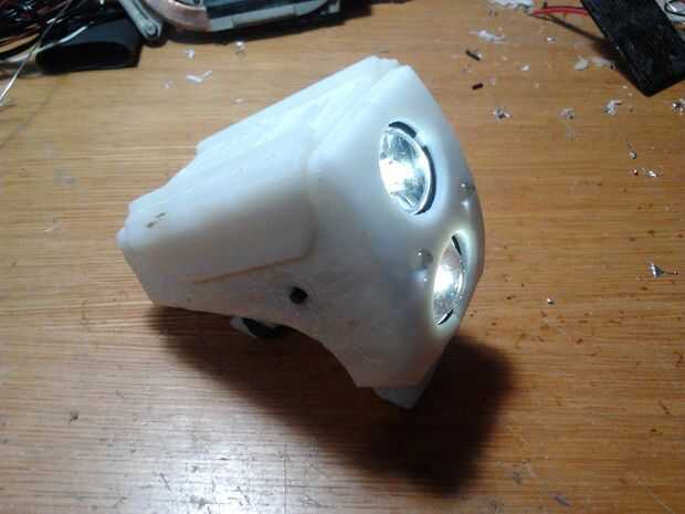 La lente de ancho está un poco subida hacia el suelo a la luz por delante y el otro recto para una mayor iluminación de distancia.