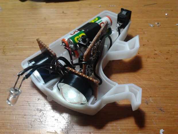 El circuito de luz está diseñado para funcionar con dos baterías de Nokia pero el prototipo se realiza mediante pilas de tipo 3AAA, generando 3.6V aprox. El producto puede funcionar durante días en la configuración de mínima energía y más de 3 horas a máxima potencia.