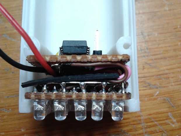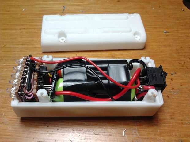 instalar el circuito en el estuche impreso y comenzó la prueba.