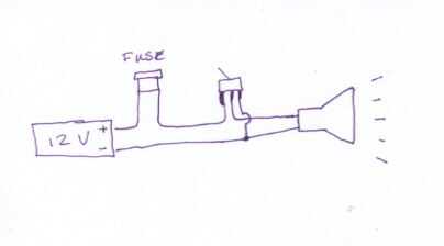 Por lo tanto, una cuchilla fusible disponibles casi en cualquier lugar. Utilizar un fusible de 10amp. El fusible debe ser 1.5 x superior a los amplificadores en el circuito. así que supongo que debe ser 20watts = 12Volts x amperios = 1.6Amps en el circuito veces 1.5 = 2.5 Amp Fusible nominal.
