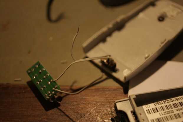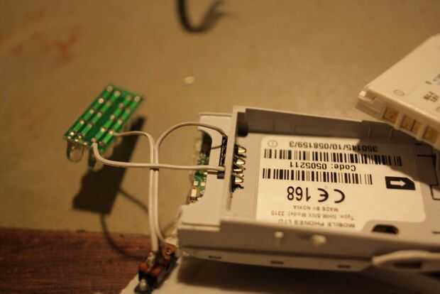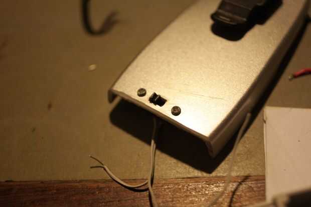 I rosca los cables de mi switch y mi matriz de LED a través del caso y soldadas en sus terminales de la batería correspondiente. La batería todavía instalada en forma normal.