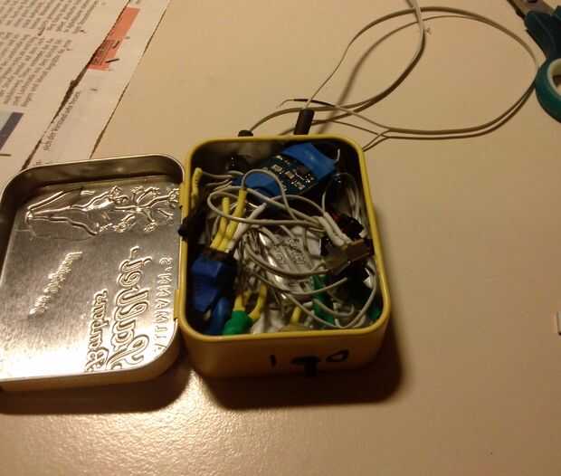 Después de todo puede ser exprimido en la caja con fuerza ligera (tenga cuidado de no romper nada). Alternativamente también es posible soldar todo en un prototipo PCB board, que puede poner en orden lo un poco;-).