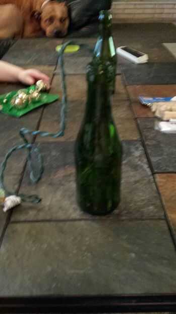Tiempo artístico!!. Realmente no soy un chico un poco artístico, dejo a mi esposa. Ella suele buscar algo en internet y luego me pide hacerlo, y este fue uno de esos proyectos. Fue divertido y simple. El reto fue bajar las etiquetas. Algunas botellas