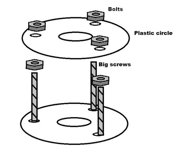 Para el cuerpo utilicé 2 viejos círculos de plástico, y os adjunto con los tornillos y los pernos como se muestra abajo allí, pero usted puede hacer que el cuerpo desea, usted también podría utilizar y od tupper.