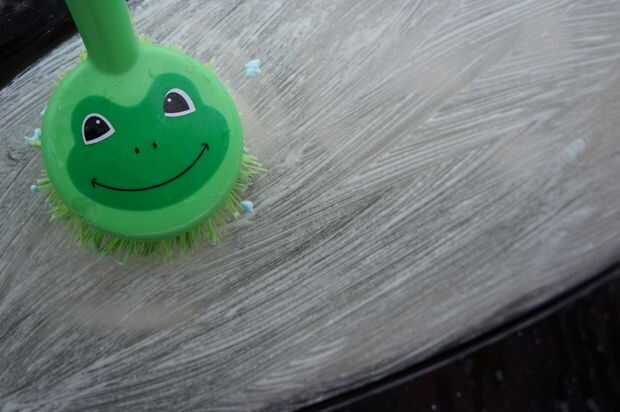 Vierte agua sobre las linternas para extraer las partículas de arena o arenosas por lo que la pasta no raya los faros. Luego aplica la pasta y suavemente frota con un cepillo, los enjuagarse y les seco pulir. Luego aplica el rainX y pulir otra vez.