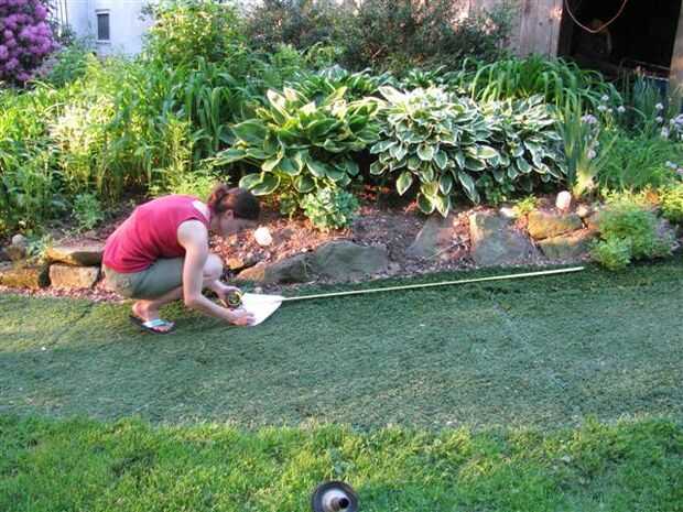 Decidir cómo le gustaría arreglar las luces en su jardín.  Minas repartidas uniformemente y los puso cerca del borde del jardín (derecha por el camino).  Para ayudarle a visualizar, poner algo en el suelo para marcar donde su luz final será (yo usé tonos claros).