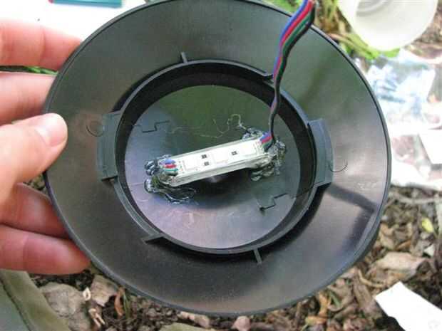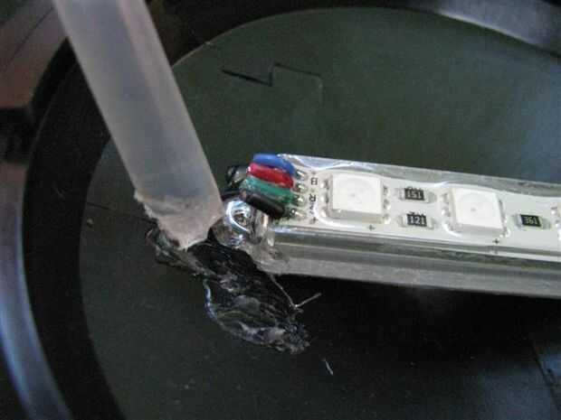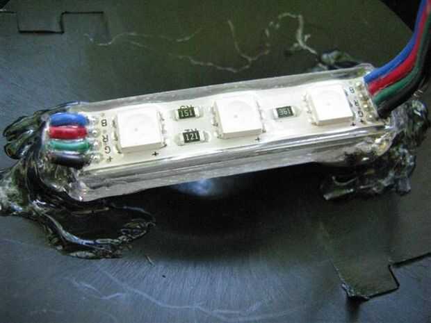 Utilice pegamento caliente para adherir el módulo sobre el accesorio de iluminación (los módulos tienen un self-stick soporte, pero este solo funciona si la superficie es plana, no cóncava o convexa).