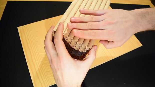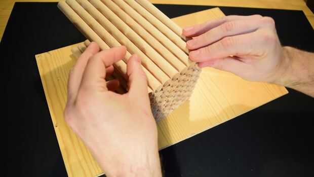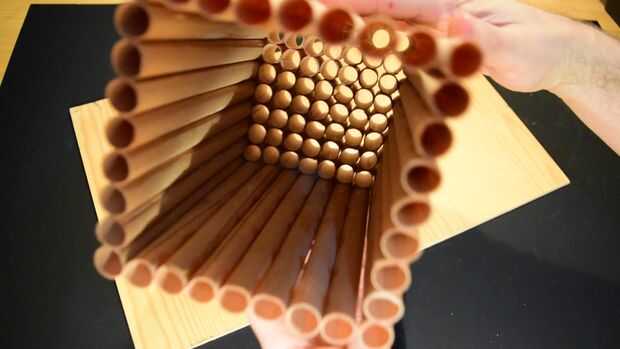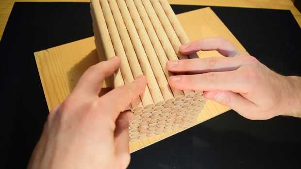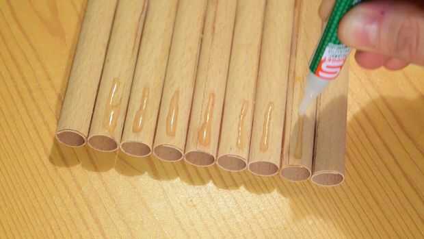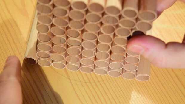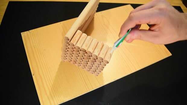 Gota de pegamento a los tubos 7 de centro en una franja de 9 piezas y luego puso la Plaza 7by7 y déjelo secar.