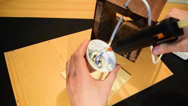 Taladré un agujero en la base para el cable y lo conecté a un portalámparas.