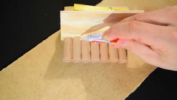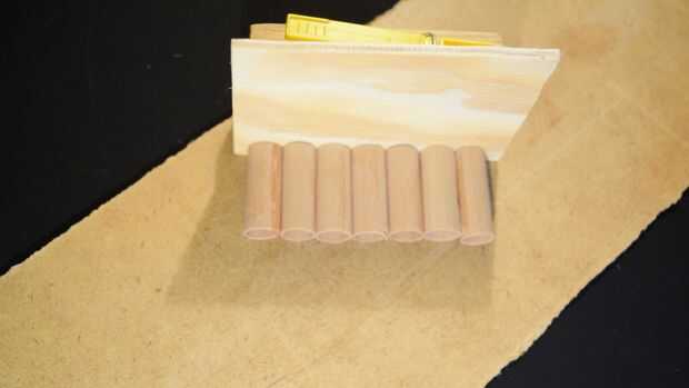 Luego de unos minutos cuando pensé que el pegamento se seca totalmente puse 7 piezas de los tubos junto a un "tope" con el lado plano. Si no es plana suficiente poner un papel de lija a la superficie plana y plana suavemente el tubo. Tenga cuidado es tan vulnerable.