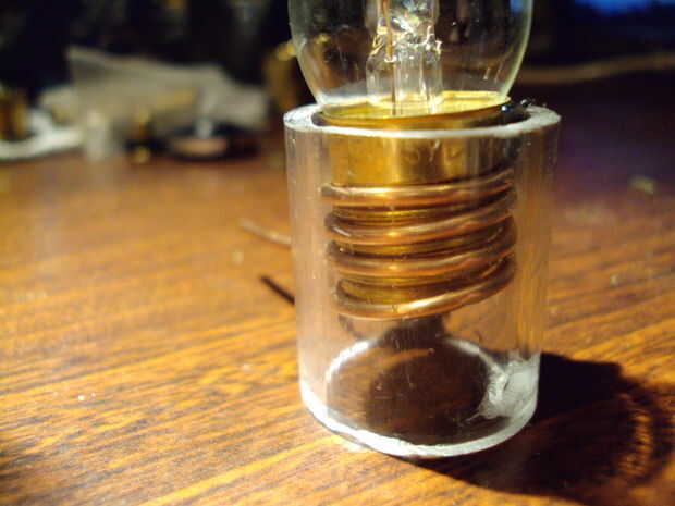 alrededor de los hilos de rosca de la base de la bombilla, creando el casquillo roscado se inserta. Luego dremal'd agujeros y ranuras en