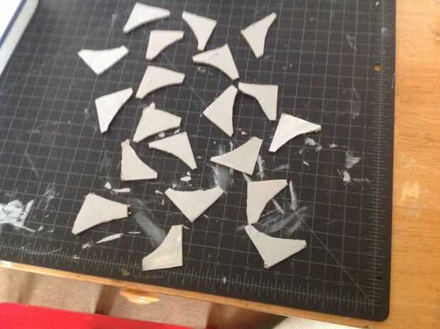Las esquinas son realmente sencillas. Todo lo que tienes que hacer es cortar 20 pedazos de cartón que parecen de la segunda foto. Luego caliente pegarlos a la caja para hacer las esquinas. No te olvides de pintar. El mismo color que el interior de la caja funciona bastante bien