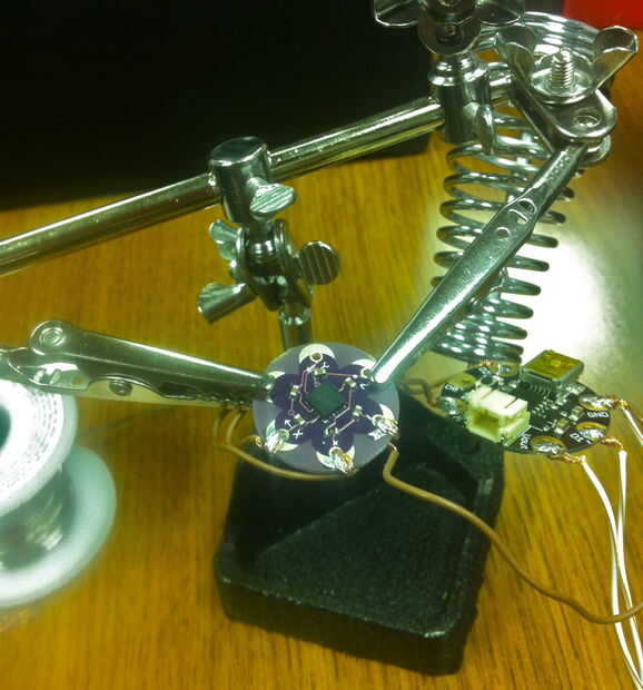 b. la soldadura todos los cables a las clavijas en la Gemma y acelerómetro.