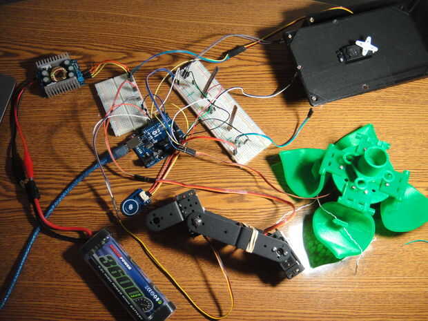 Aquí está un proyecto similar que hizo un buen trabajo en el que muestra el cableado de los foto resistores y servos: