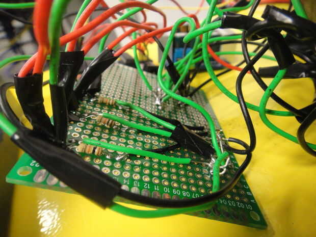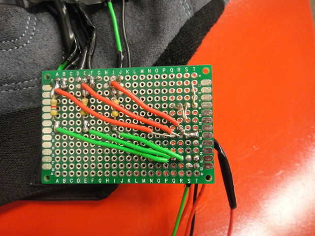 Entonces, el poder y la tierra para los sensores [fotorresistencia + todos los flex sensores] viene de la placa arduino.