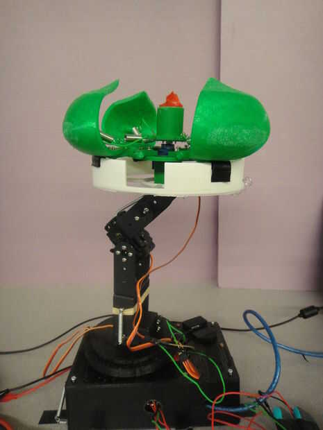 Hola,para un proyecto escolar (un equipo de 3 estudiantes de diseño de interacción) creamos una flor mecánica que se abre cuando alguien trata de cerca de un sensor de movimiento. Cuando el sensor no detecta ningún movimiento, se cierra.Lo que usted