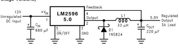 :: 2596 LM es simple conmutador ic tener capaz de dar 3 amperios máximo. corriente a la carga con más del 85% eficiencia.