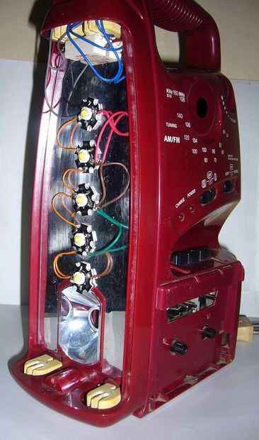 Añadir 28 marzo 2015: hice mi caja de herramientas para emergencias y uso ahora que mi ciudad fue enterrado en el barro. Como experiencia puedo decir que sirve para cargar los teléfonos y escuchar radio.¿Una vieja caja de herramientas? ¿un altavoz de