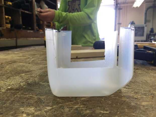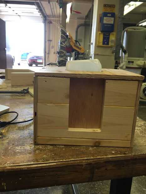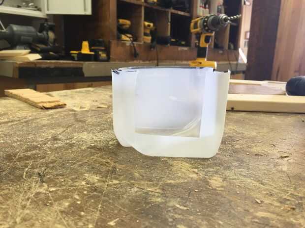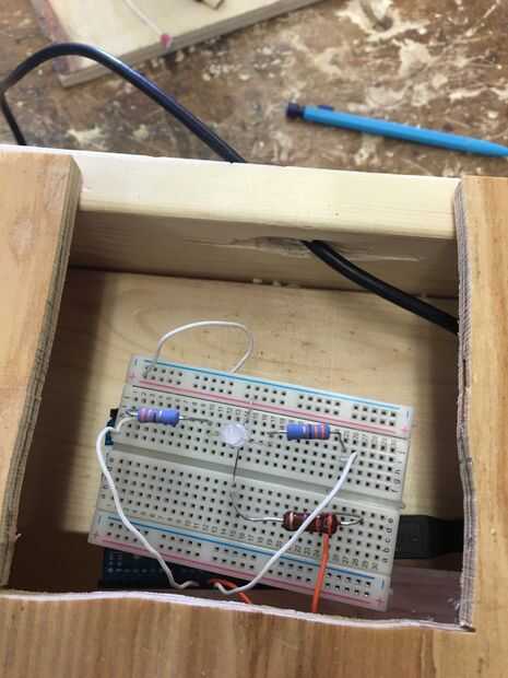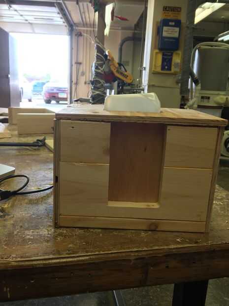 y luego vas a querer cortar la parte superior del tamaño de medio corte jarra de leche de medio galón y poner el arduino en el estante y coloque la jarra en la parte superior