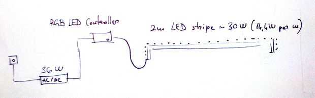 -Banda de LED lugar sobre base preparada hacia el techo.