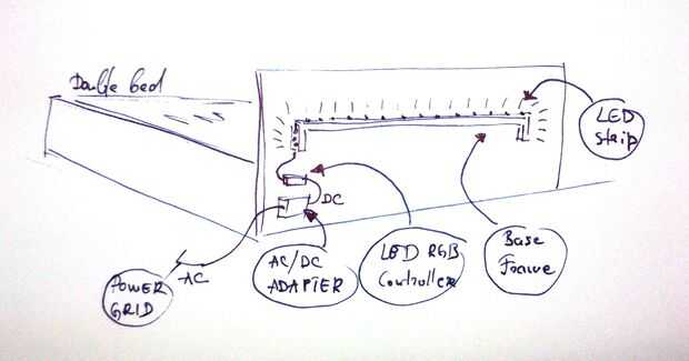 -Si la trasera de la cama no es verticalmente recta, sugiero hacer cierta distancia entre malo y bandeja para conseguir más espacio para la luz emitida.