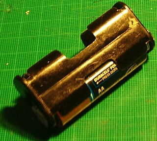 Un sostenedor de batería 2 AA cell y un clip de batería juego - usted puede comprar o robar a uno de una pila de voltios PP3 de 9 muerta.