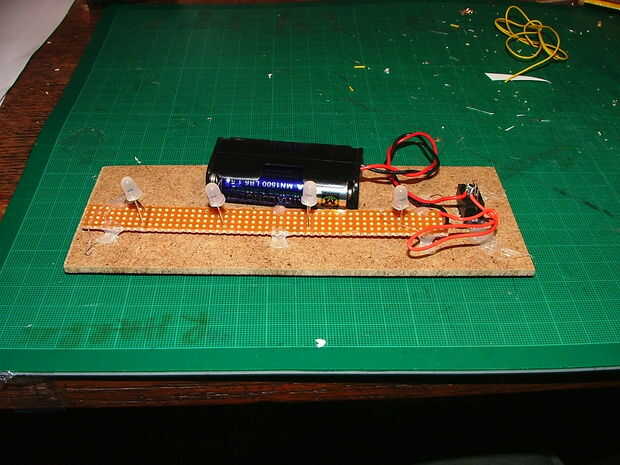 hacer una impresionante linterna led.Paso 1: Reunir los materiales. Reunir nuestros materiales:2 led throwies1 carrete de pesca claro o de colorpegamentoPaso 2: Poner junto Primero agregar una línea de pegamento en las dos caras del carrete donde el
