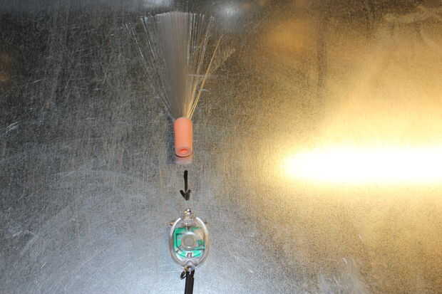 muy simples cosas, pero tiene que verse para entenderse.La fibra óptica funciona porque la luz moviéndose a lo largo de la fibra se mantiene dentro de ella - se refleja en el brillo de la superficie de la fibra. Se trata de "reflexión interna total&q