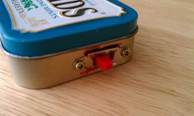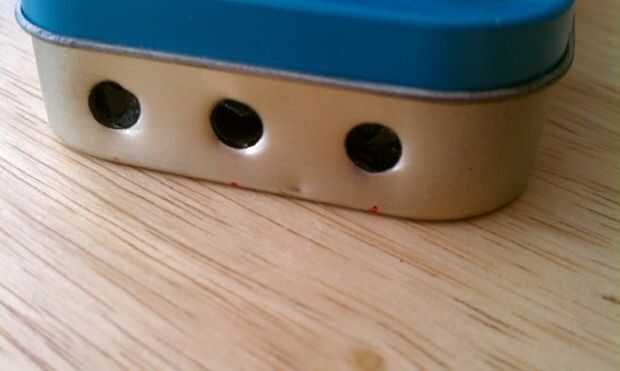 Para perforar el agujero tienes que sujetar la lata muy constante para que la broca no se deslice apagado y golpeó su mano. Taladre el agujero lo suficientemente grande para el LED a pero lo suficientemente pequeño como para que pueda permanecer en el lugar. Luego usas el cuchillo para cortar un rectángulo para el interruptor. Originalmente usé tres LEDs pero dos se rompieron.