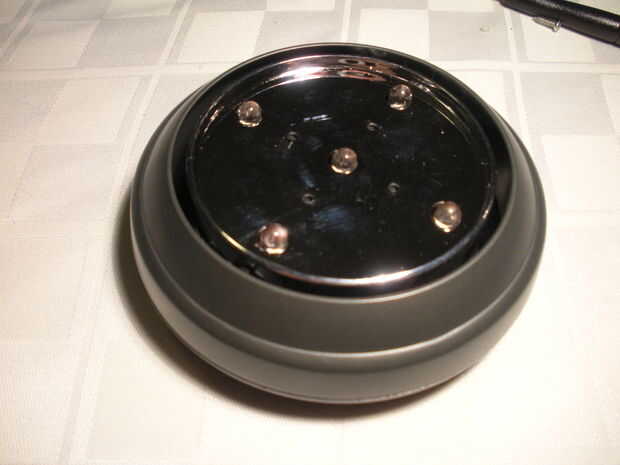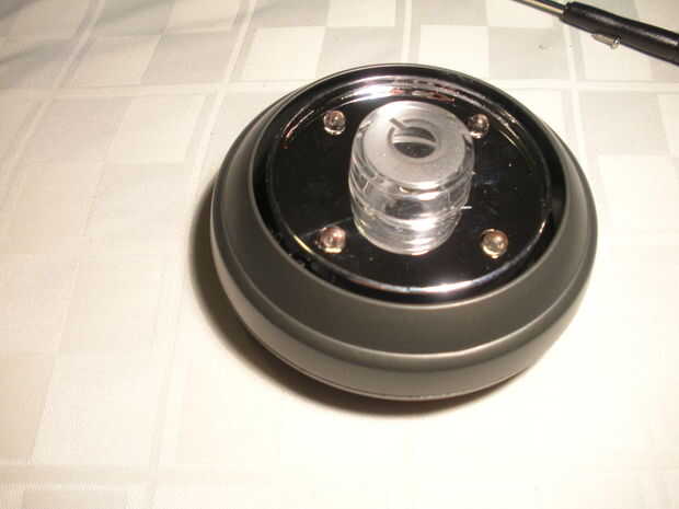 Volver todo a la forma en que usted tomó aparte.  Ahora debería tener una luz de empuje con ninguna cubierta.  Si tienes una luz como yo con ningún interruptor necesita mantener el botón, o algo pequeño para poner en los agujeros, para encender y apagar.  Que tienen el interruptor en el lado estén dorados.