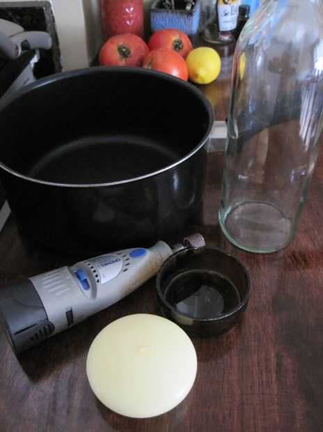 Para este proyecto usted necesitará algunos suministros. Herramientas reales no se requiere que no sea una estufa, un papel de lija, tetera y un cortador de botella. Yo usé mi herramienta dremel en lugar de la lija por velocidades.