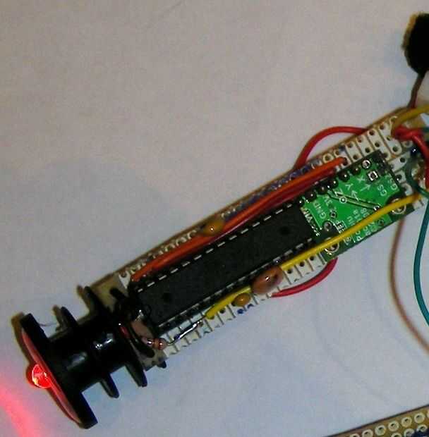 El proceso ocurre en un ATmega328 programadas con Arduino. Estos chips pueden ser también programarse directamente en C, pero Arduino cuida mucho de la instalación y generalmente hace programación menos tediosa. Arduino tiene todo lo que necesita este proyecto. El ATmega168 probablemente sería suficiente para este proyecto pero el ATmeta328 en $1, proporciona 2 X el espacio de programa.