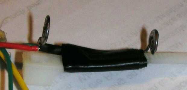 Pase el extremo libre del puente conectado a la terminal media del interruptor a través del PCB. Recortar y soldar a otro conector de la batería.