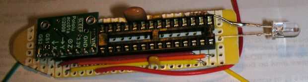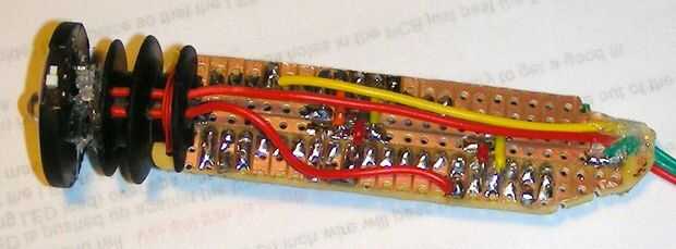 El PCB se sujeta con un alambre alrededor de la parte inferior de la mitad de la última costilla. Taladre dos agujeros pequeños en el pasado sólo PCB poner fin a la primera costilla de la barra a cada lado del eje. El PCB en lugar del alambre, gire y recorte el exceso.