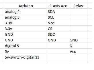 Aquí es el diseño básico de la Asamblea. utiliza un arduino uno y un acelerómetro de 3 ejes (a pesar de sólo muestra un eje). la señal digital generada en el arduino se utilizará para activar el relé o sólo podría ser utilizada para activar un LED.