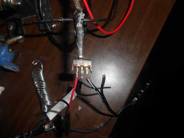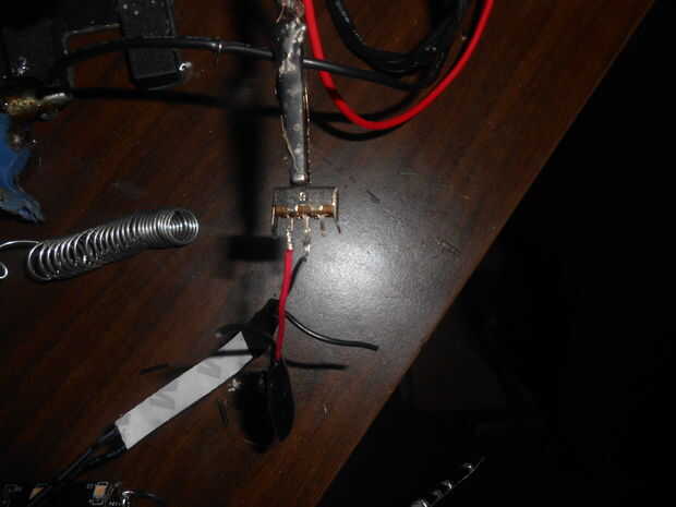 El interruptor tendrá tres patas. Solde el cable positivo del LED a la media pierna luego alambre de soldadura de que la batería de 9 voltios se encaja a presión el cable positivo a una pierna exterior (no importa cual) y luego soldadura ac dc adaptadores positivo a la otra pierna exterior. Esto le permite seleccionar los 9 voltios alimentar el LED o la fuente de alimentación de 12 voltios para alimentar los leds. Ahora va a ser un poco regulador de 12 voltios 9 voltios pero todavía es brillante y obvio :)