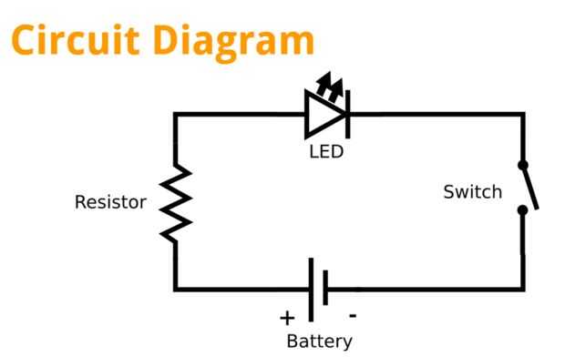 El esquema del circuito es una combinación serie de LED, un interruptor, una resistencia y una batería de 9 v.