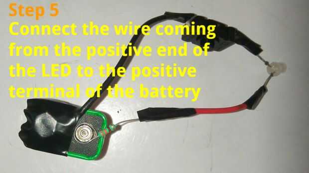 Paso 5: Conecte el cable proveniente de la pierna más larga del LED al borne positivo de la batería.