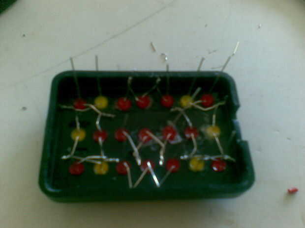 un pequeño pero poderoso con pilas luz de la noche. Seleccione de modos diferentes de color sólido o disco modo llamativo! También haría una luz excelente bicicleta. Construido a partir de 7 LEDs de color y un dot-it.Encontré estos LEDs comprando