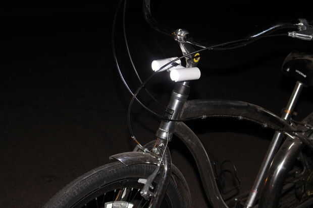 Por la noche, encender las linternas y ajustar para iluminar el camino delante de usted. Trace una línea en el PVC y la suspensión para ayudar en la alineación más tarde.