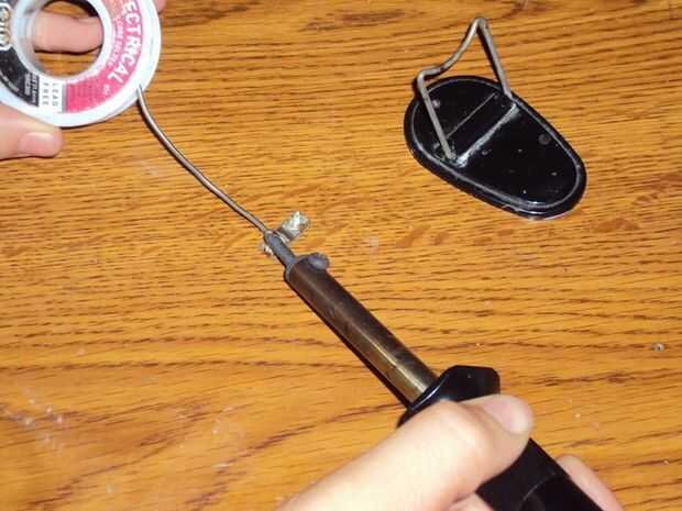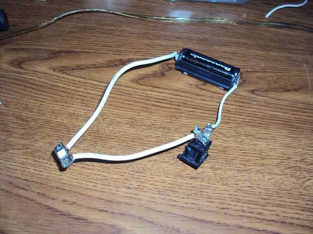 Un alambre de la soldadura desde el portapilas a la LED, una continuación, un segundo cable líder del LED al interruptor. Debe soldar un tercer cable del interruptor para el soporte de la batería.