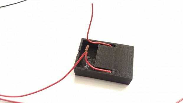 Voltee la base del trofeo y conecte el cable rojo a uno de los cables rojos conectados a los terminales de la hoja.