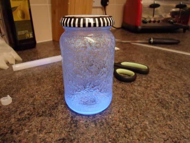 7) si ha salido el tubo de vidrio, poner dentro el glowstick y asegúrese de que el extremo abierto esté apuntando hacia arriba.