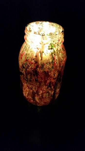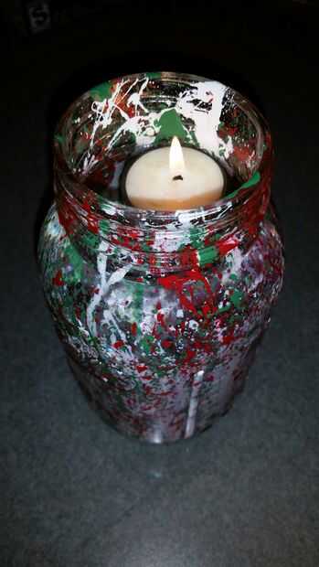 Llene la jarra con agua. Poner una o dos velas mini en la parte superior de la jarra flotando en el agua. También puede agregar algunos arándanos al agua o agujas de pino, que flotan al lado de la vela y hacer que se vea aún más bonito. La pintura no se descolorará fuera del agua, dependiendo de lo que estás usando. Sus seres queridos les va a encantar este regalo! Feliz Navidad todo el mundo!