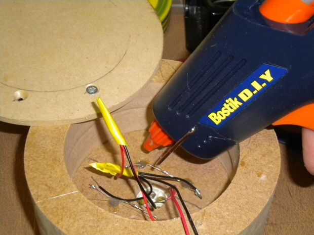 • Vuelva a colocar el circuito y pegamento pistola de la parte posterior de los LEDs