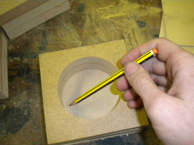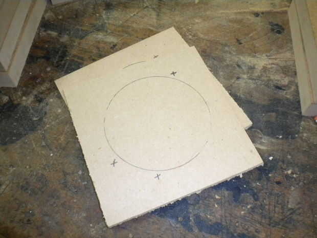 • Corte tres piezas de MDF de 4mm hasta 120 x 120mm