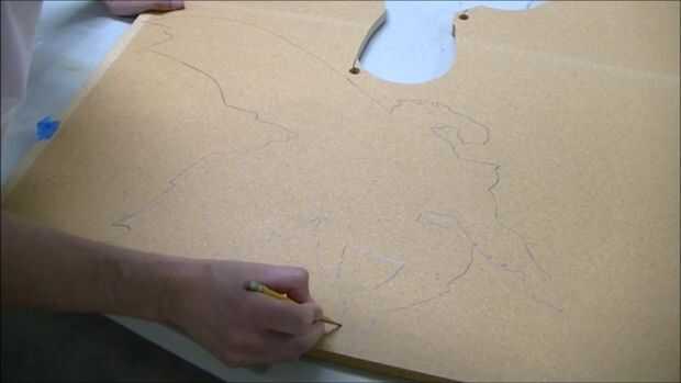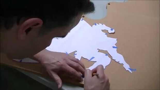 A continuación remonta las plantillas en el tablero de partícula que estaba usando. Utilizar pequeñas tiras de cinta adhesiva para sujetar la plantilla en su lugar mientras que rastrear la imagen. Cuando termine me tire de la plantilla y rellenar los huecos que fueron causados por la cinta.