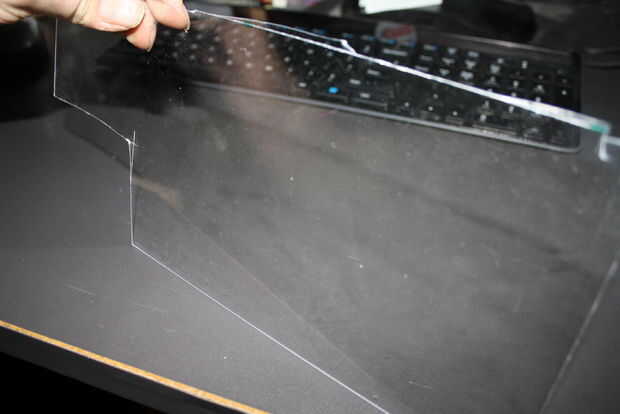 Recibí el plexiglás (del acrílico) de un marco de imagen de tienda de dólar barato. Tuve algún desecho de él a la izquierda de otro proyecto. Esto se utiliza para la primera hilera de baldosas a la base. Usted podría utilizar algo más (si algo más probablemente algo reflexivo) como la placa base. Usé el plexi para que la luz puede brillar a través.