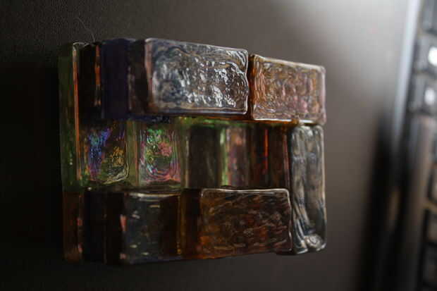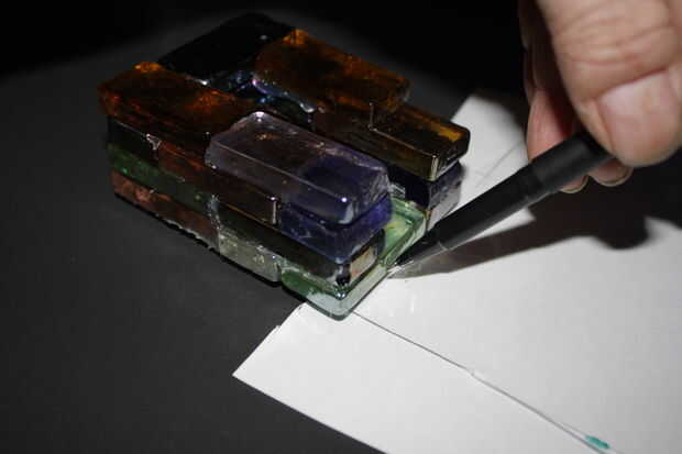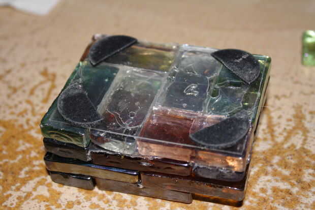 Coloque pegamento hacia abajo, colocar una ficha, dejar enfriar, pegar el borde y la base para la siguiente repetición hasta que su base inferior está completa. Iniciar el curso siguiente y continuar hasta llegar al punto donde podrá colocar azulejos en la parte superior y cierre. Tenemos que ser capaces de poner el LED y luces allí, así que dejamos un canal hasta que tenemos que hacer.